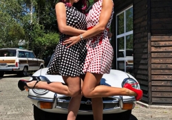 Gute Freunde wissen wie bekloppt du bist und trauen sich trotzdem mit dir in die Öffentlichkeit und das sogar im Partnerlook @high_heels_tamia #friendshipgoals #friends #girls #cars #car #twins #fun #highheels #nylon #skirt #louboutin #fitness #shooting #ootd #summer #yvessaintlaurent #jaguar #etype